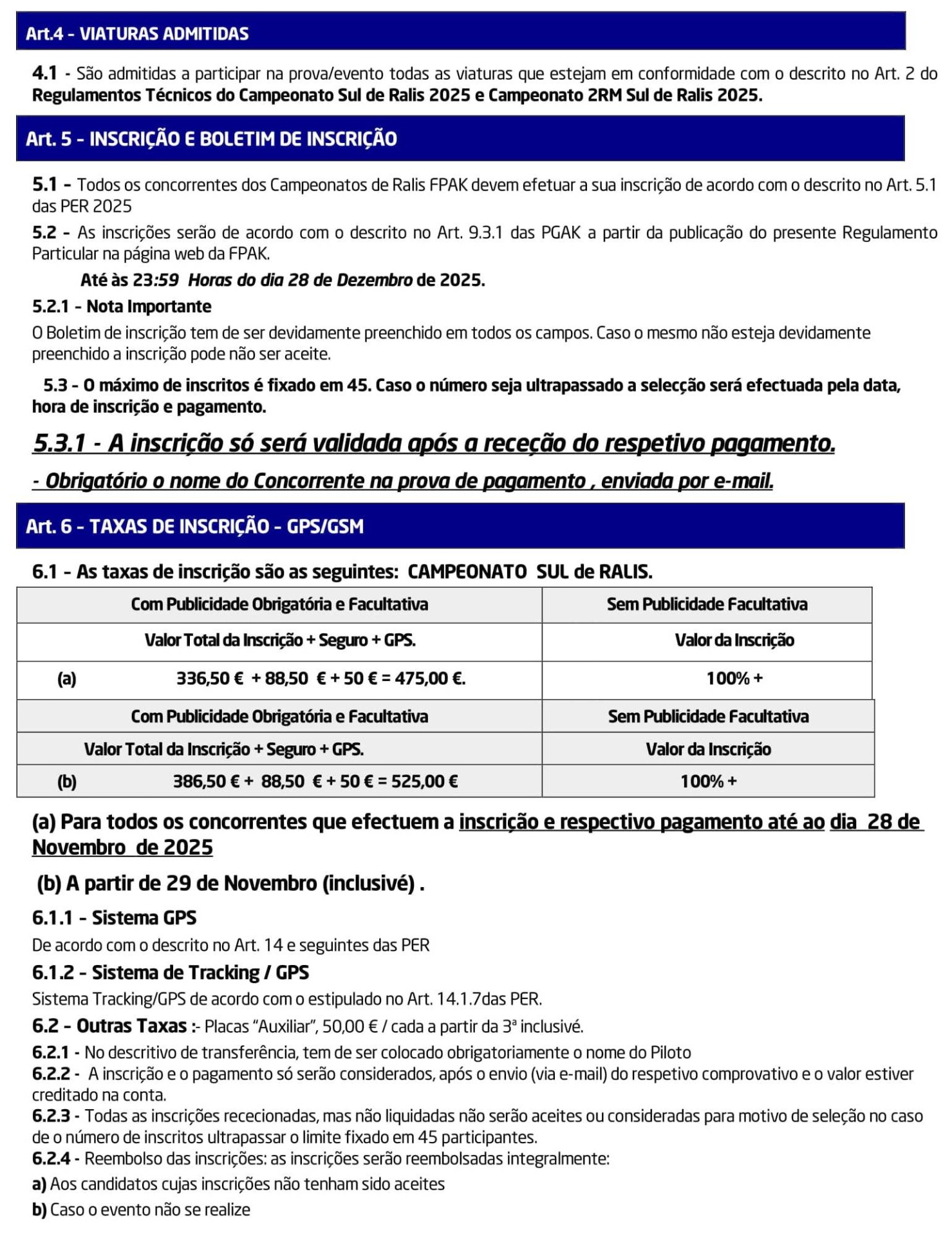 Inscrições no Portal da FPAK + Regulamento Particular + Mapa de Controlos