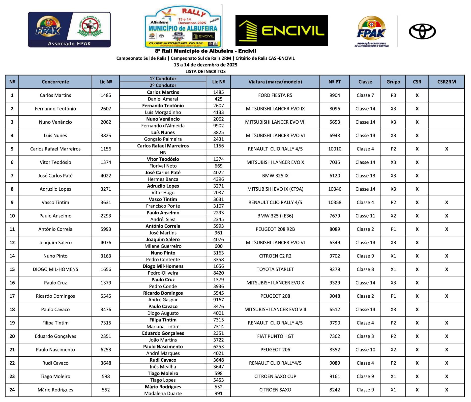 Equipas Admitidas à Partida + Lista de Inscritos + Aditamento N.º 2 + Aditamento N.º 1 + Regulamento Particular + Mapa de Controlos