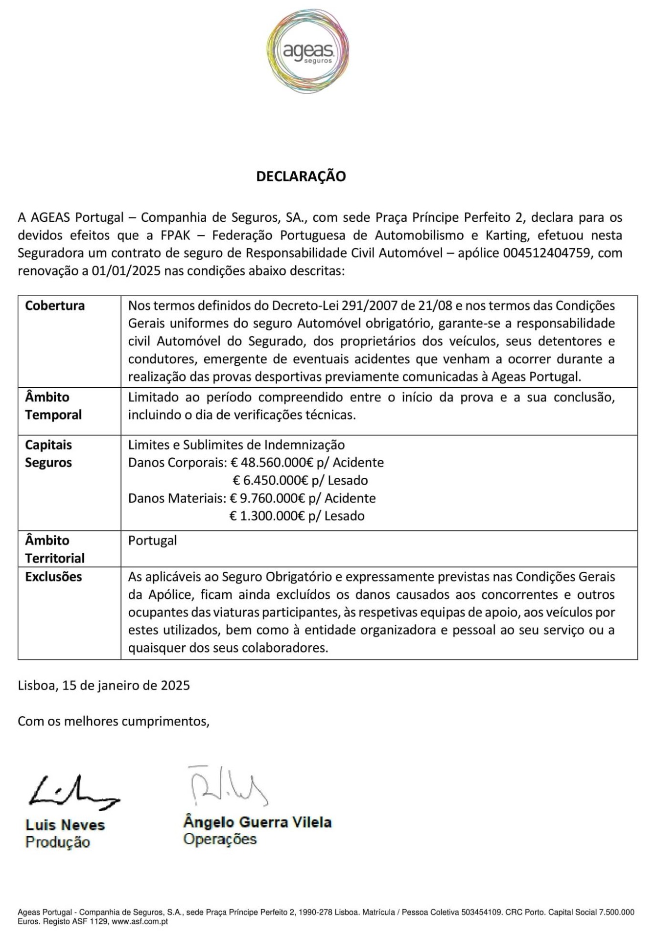 Declaração Ageas Seguros